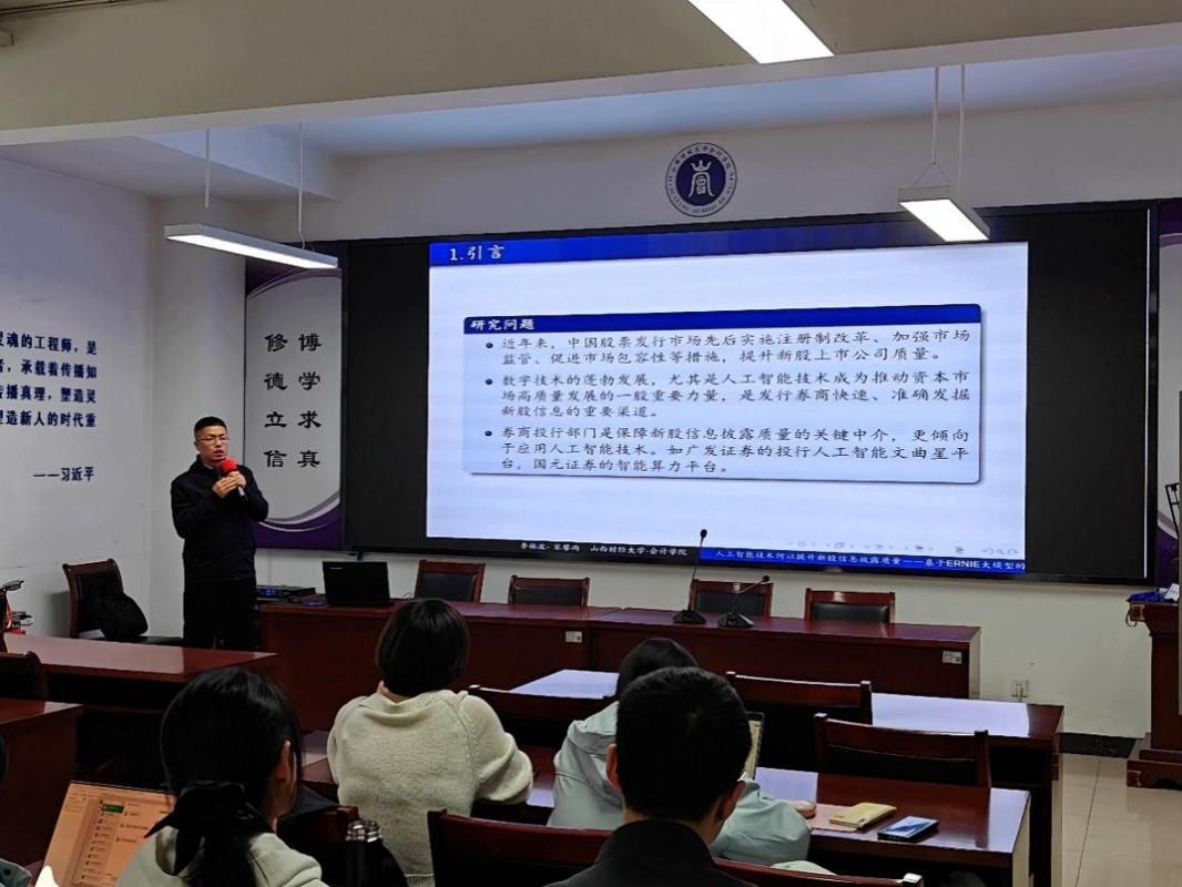 第237期学术论坛在学院大会议室如期举行,学院三十余位骨干教师及博士生齐聚一堂,共同参与了此次学术交流活动。论坛分为两个阶段。第一阶段,李林波老师分享了自己最新的研究成果,围绕大模型技术在信息披露中的应用,深入探讨了人工智能对新股信息披露质量可能产生的影响机制与效果。第二阶段,薛海燕老师从研究背景、理论贡献、研究假设到研究设计等多个维度,系统介绍了其近期关注的“企业气候行动的驱动机制”研究主题,重点剖析了标杆企业与追随型企业在气候行动上的内在关联与互动逻辑。在随后的交流环节中,与会教师围绕选题价值、研究框架设计、变量测度方法以及政策导向意义等关键问题展开了深入而热烈的讨论。本次论坛不仅为教师们提供了前沿会计学研究的交流平台,也使大家对人工智能、气候治理等交叉领域的最新学术动态有了更加清晰和深刻的认识。