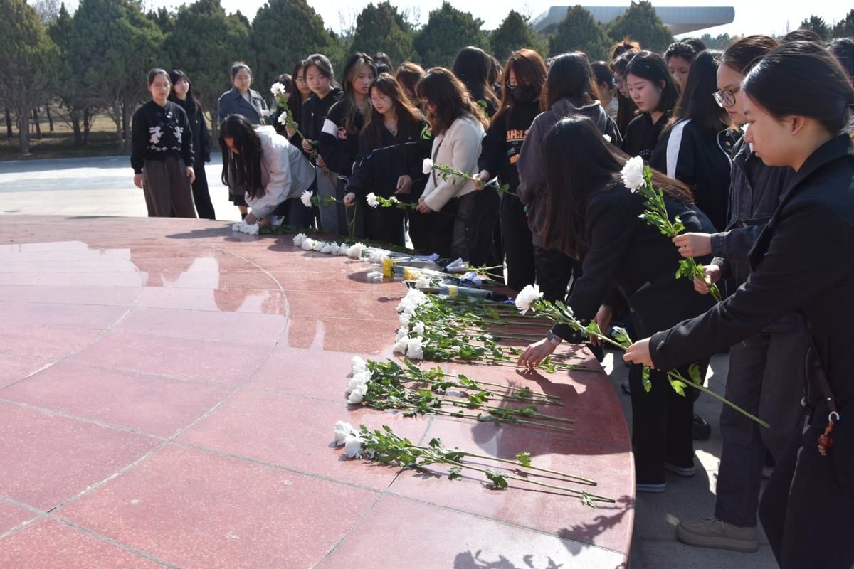 活动现场庄严肃穆,全体同学怀着无比崇敬的心情,整齐列队静立于烈士纪念碑前。伴随着低沉的哀乐,全体人员肃立默哀,深切缅怀为民族解放、国家富强、人民幸福舍生取义、浴血奋战的革命先烈,追思他们的崇高品格与不朽功勋。默哀礼毕,同学们手持洁白的菊花,依次缓步上前敬献鲜花、深深鞠躬,以朴素真挚的方式寄托哀思,向革命先烈致以最崇高的敬意。