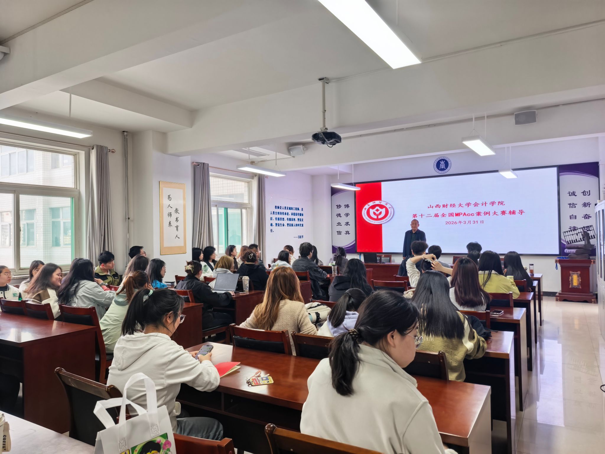 在大会议室举行第十二届全国MPAcc案例大赛辅导会,150余名师生参加了辅导会。辅导会邀请了学校实验中心副主任郭宗文老师和国产成人自拍-成人偷拍网-国产色情自拍